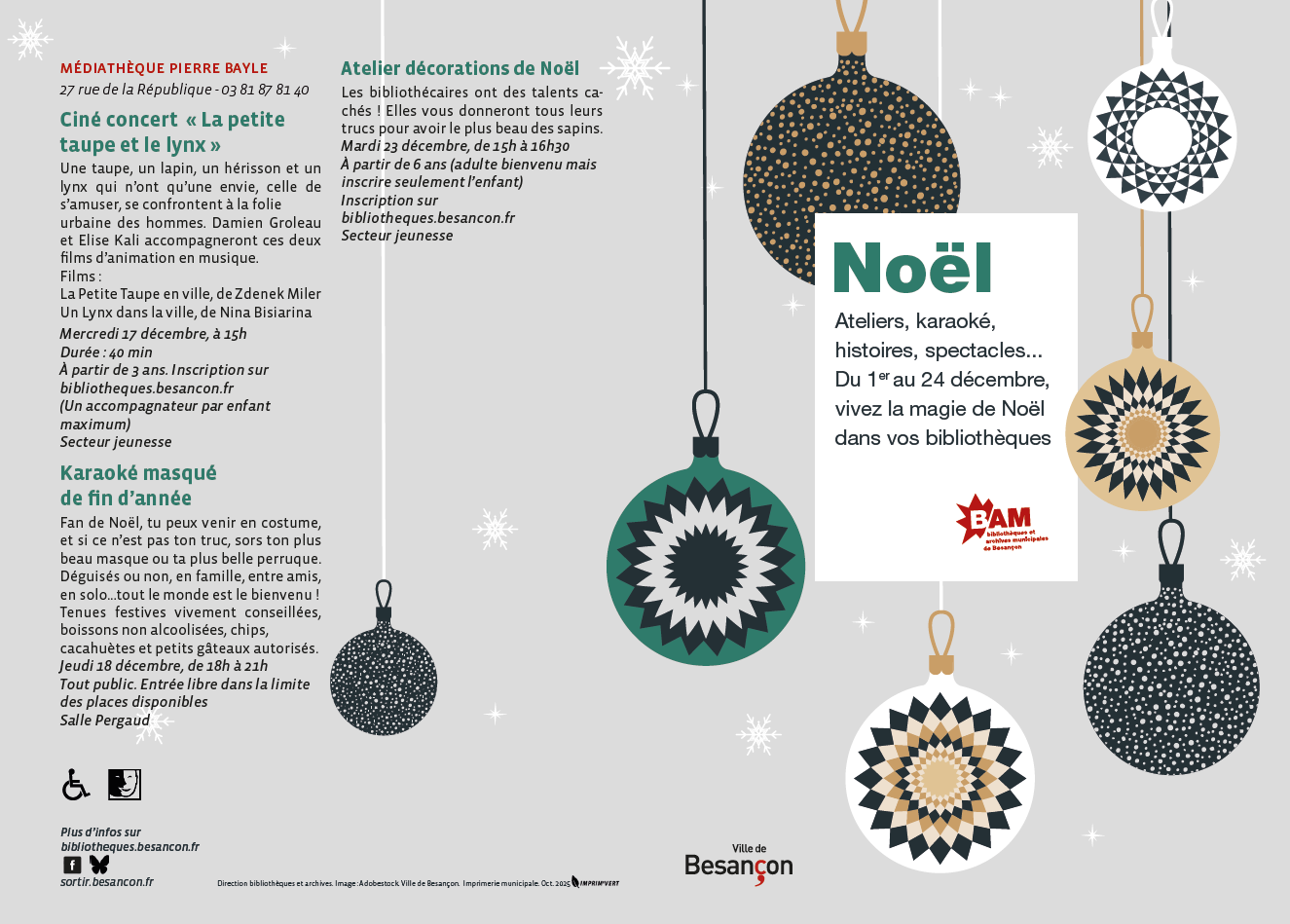 Veuillez trouver ci-dessous de la part de la direction Bibliothèques et Archives, le dépliant concernant la semaine du numérique ainsi que le programme de Noël dans les bibliothèques de la Ville.