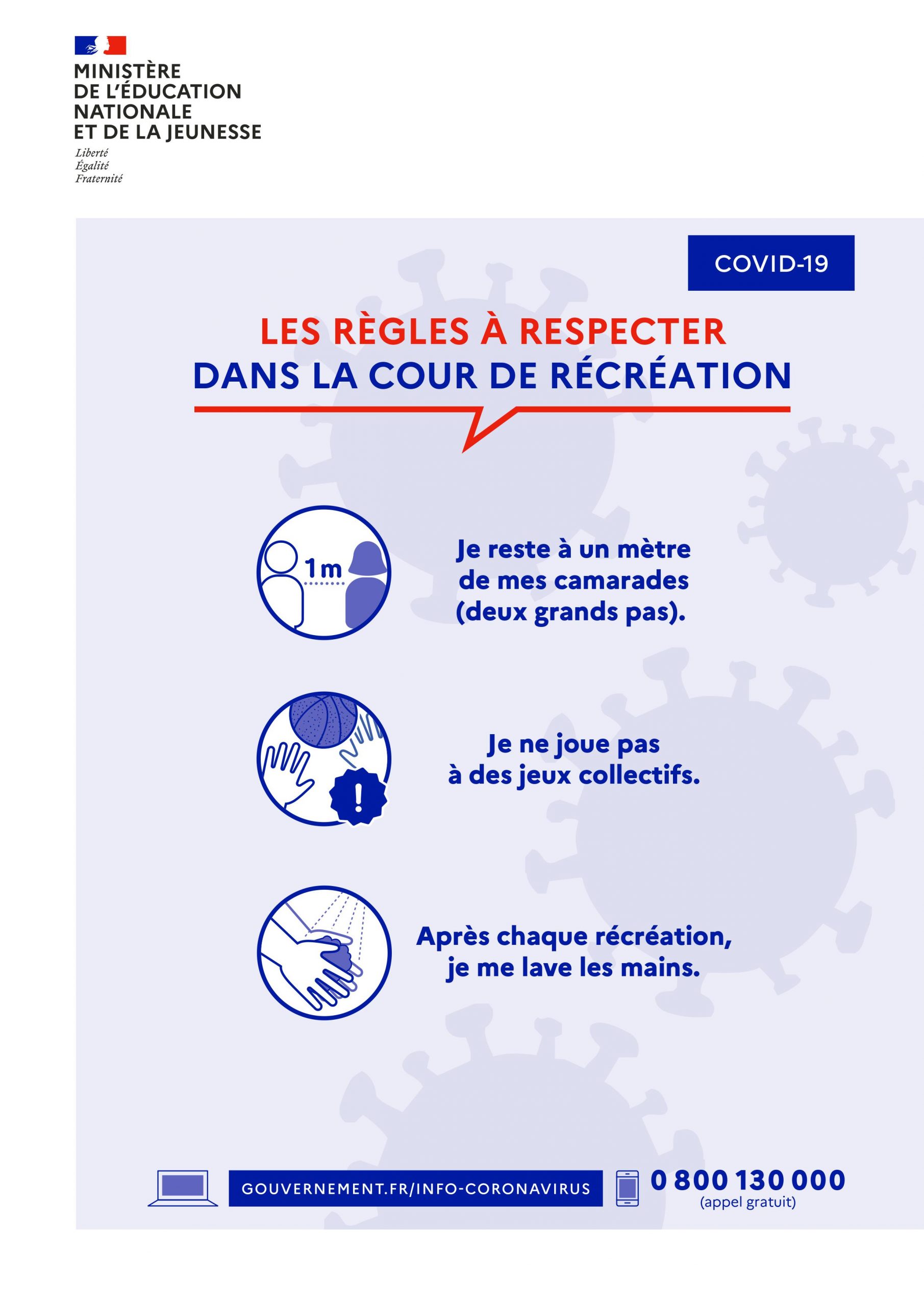 Les gestes barrière rappelés dans le présent guide, doivent être appliqués en permanence, partout, et par tout le monde. A l’heure actuelle, ce sont les mesures de prévention individuelles les plus efficaces contre la propagation du virus.