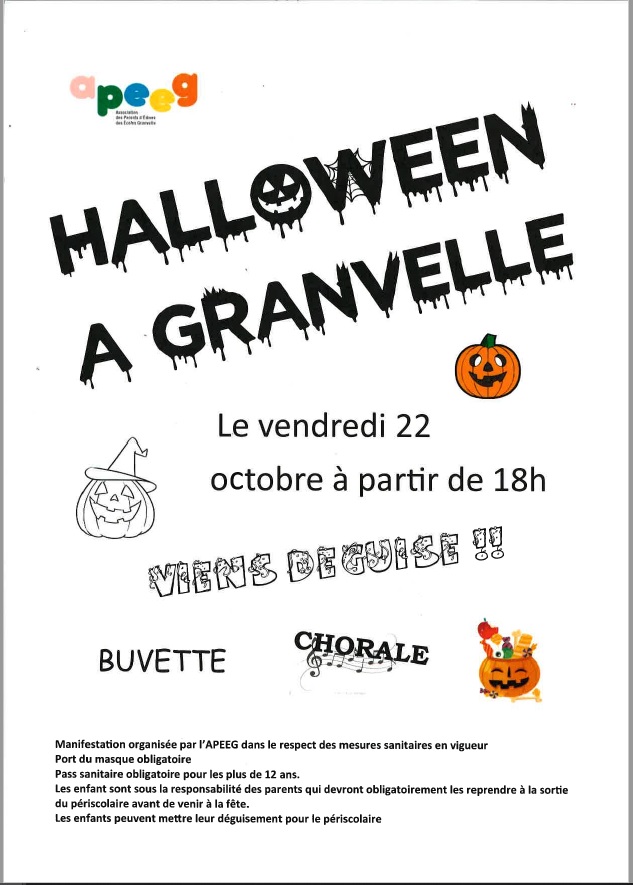 L’association des Parents d’élèves de l’école Granvelle (APEEG) organise ce vendredi 22 octobre, à partir de 18h, une fête autour du thème d’Halloween. Les enfants pourront venir déguisés et participer à la chorale.
