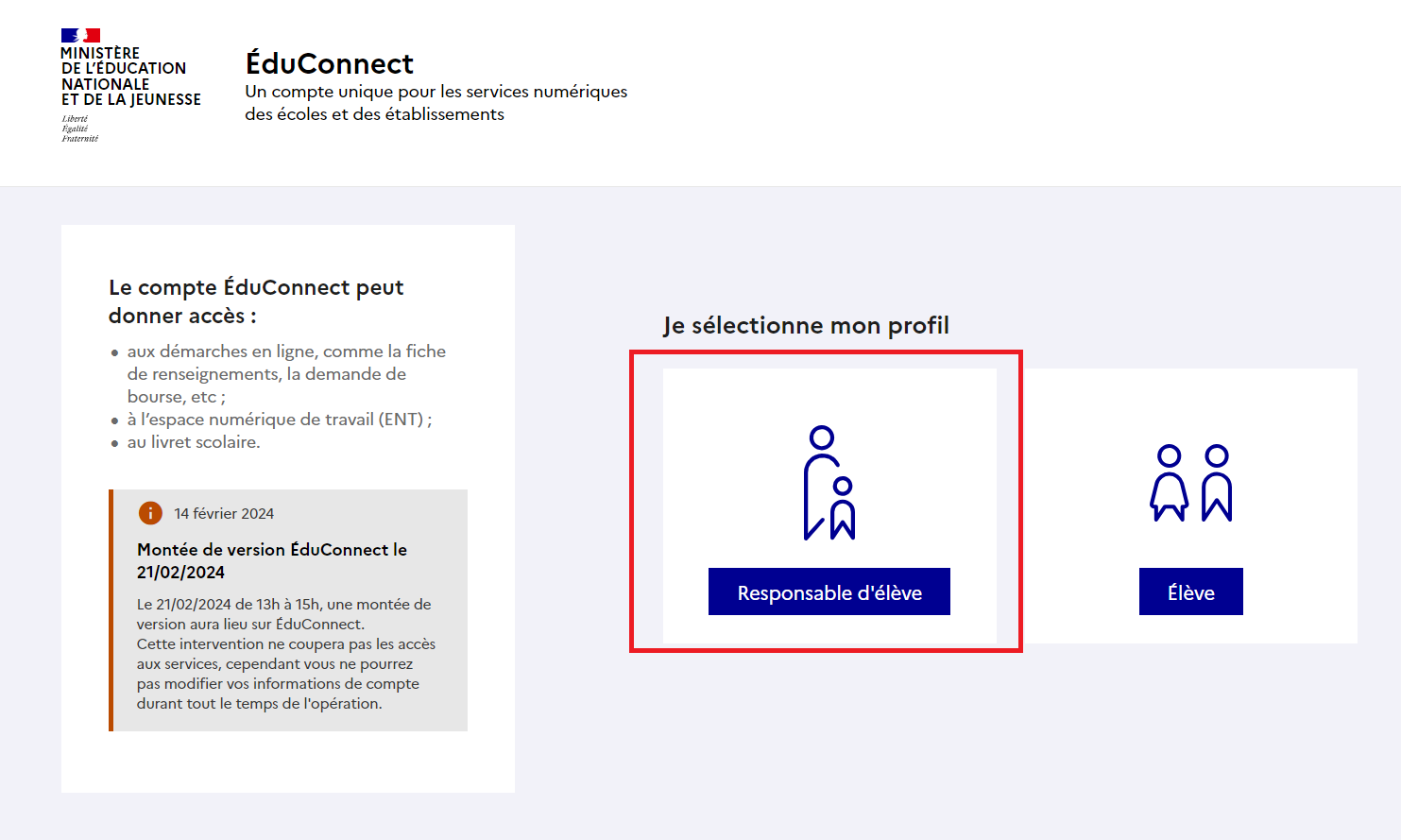 Se rendre sur le site et sélectionner le profil “responsable d’élève”.