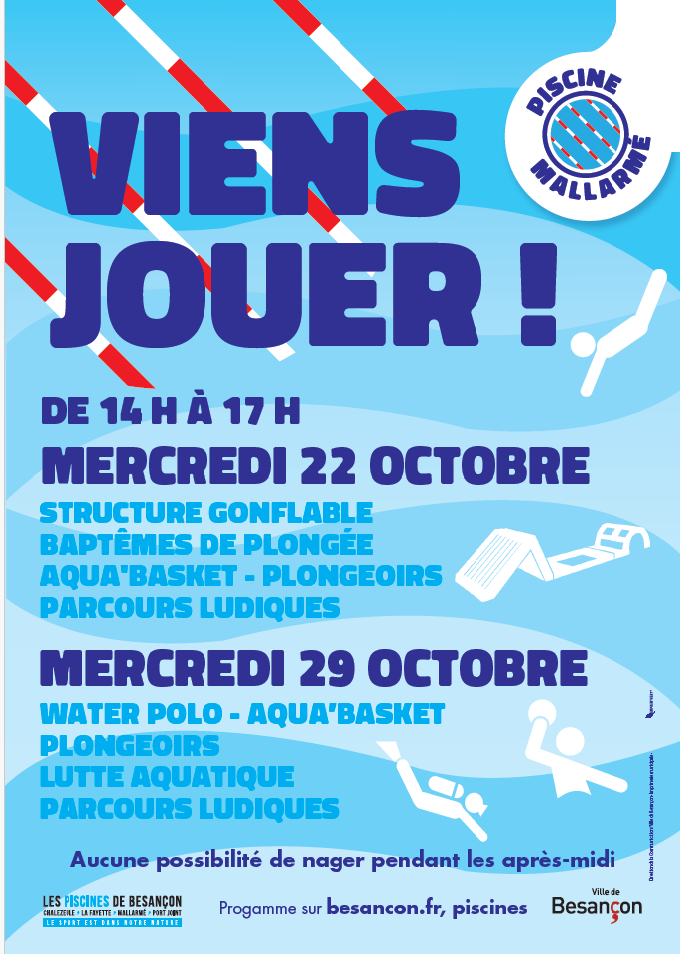 Pour information, les animations aquatiques et initiations sportives Viens Jouer Automne 2025 seront :